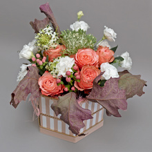 Emoție de toamnă - aranjament cu lyzianthus și trandafiri