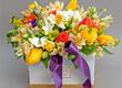 Pastel de primăvară - aranjament cu gerbera mini și lalele