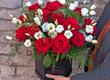 Mesaj de iubire - aranjament cu trandafiri și garoafe
